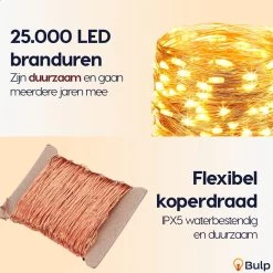 Lichtsnoer – 50 Meter Met 50 Lampen – 0,7W LEDs Op Stokjes – Kleur Van Gloeilamp (2650K)
