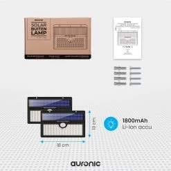 Ben jij opzoek naar een krachtige en felle buitenlamp? Kies dan ook voor de Auronic Solar LED-wandlamp met drie verschillende lichtstanden en 78 LED’s. De solar wandlamp laadt zichzelf overdag op met zonne-energie en geeft ’s avonds en ’s nachts een felle en krachtige lichtopbrengst. De solar wandlamp is eenvoudig te monteren met de bijgeleverde RVS-schroeven. Schrik ongewenste bezoekers af en ga met een gerust hart naar bed!