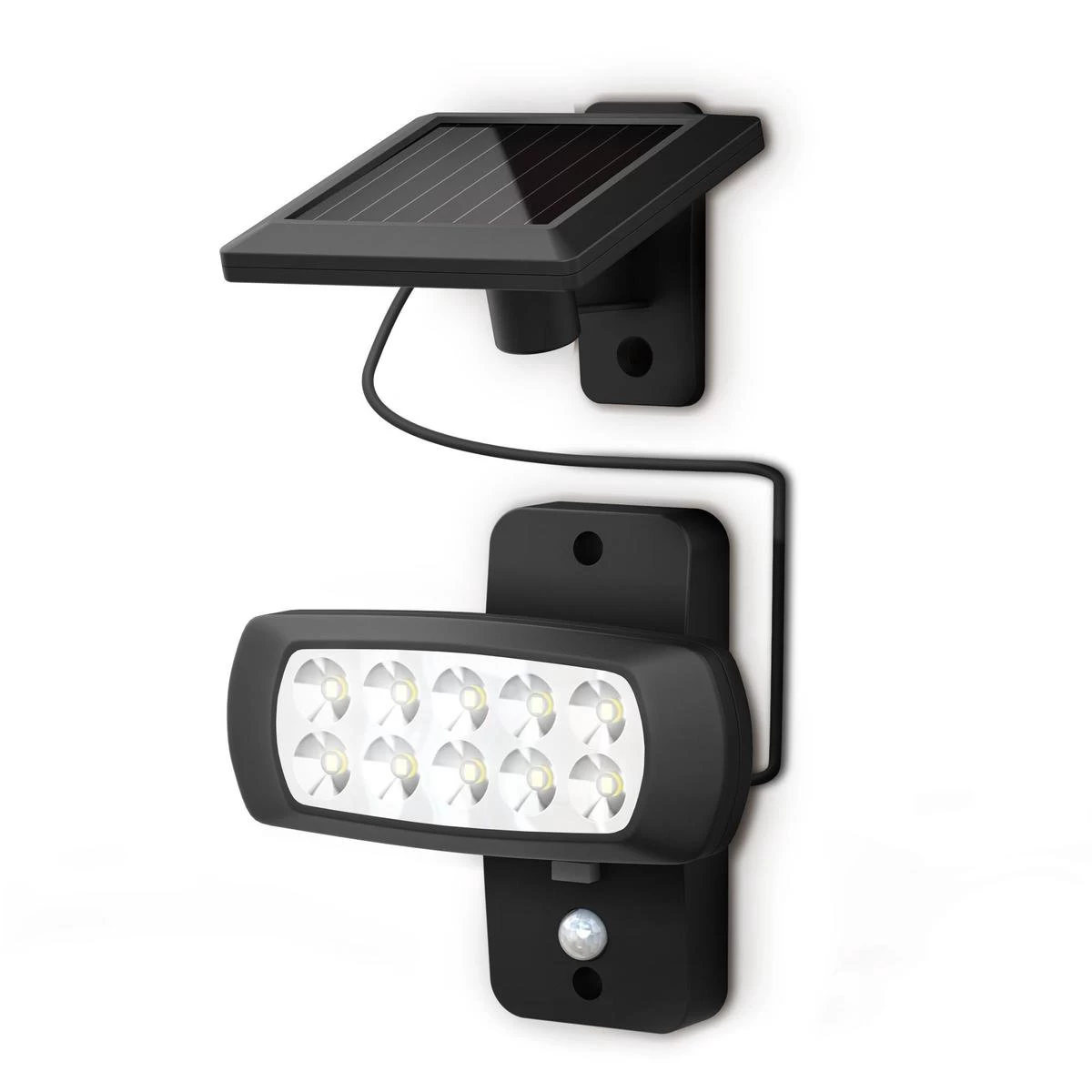 De 2-delige zonnelamp voor buiten bestaat uit een zonnepaneel en een schijnwerper. De twee componenten zijn verbonden met een weerbestendige 2,5 m lange kabel. Hierdoor kunt u het zonnepaneel onafhankelijk van de schijnwerper optimaal op de zon richten en buiten gebruiken.