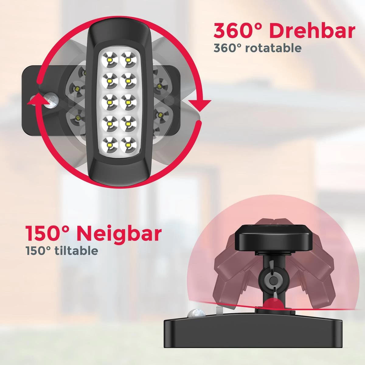 Deze weerbestendige LED-buitenlamp op zonne-energie met bewegingsmelder en schemersensor is perfect als tuinverlichting voor grote oppervlakken buiten, zoals opritten, tuinpaden, terrassen, deuren of tuinhuisjes.