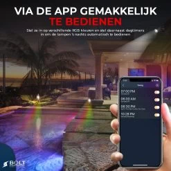 De Bolt Electronics® Tuinspots zijn sfeermakers in uw tuin en hebben smart verlichting met 16 miljoen kleuren.