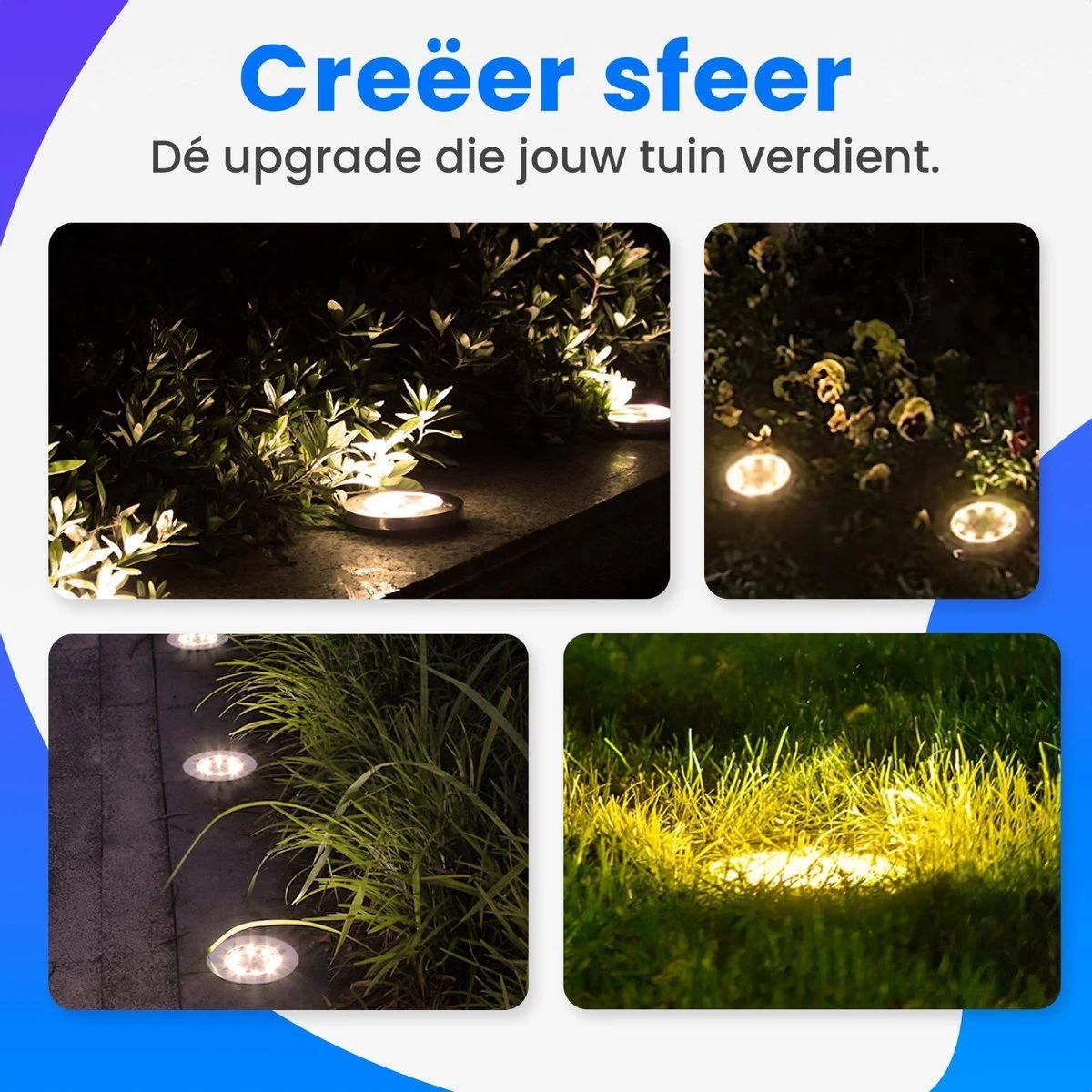 Met de set van vier grondspots kies je voor prikspots van kwaliteit die tot wel tien uur kunnen branden na een dagje zon.