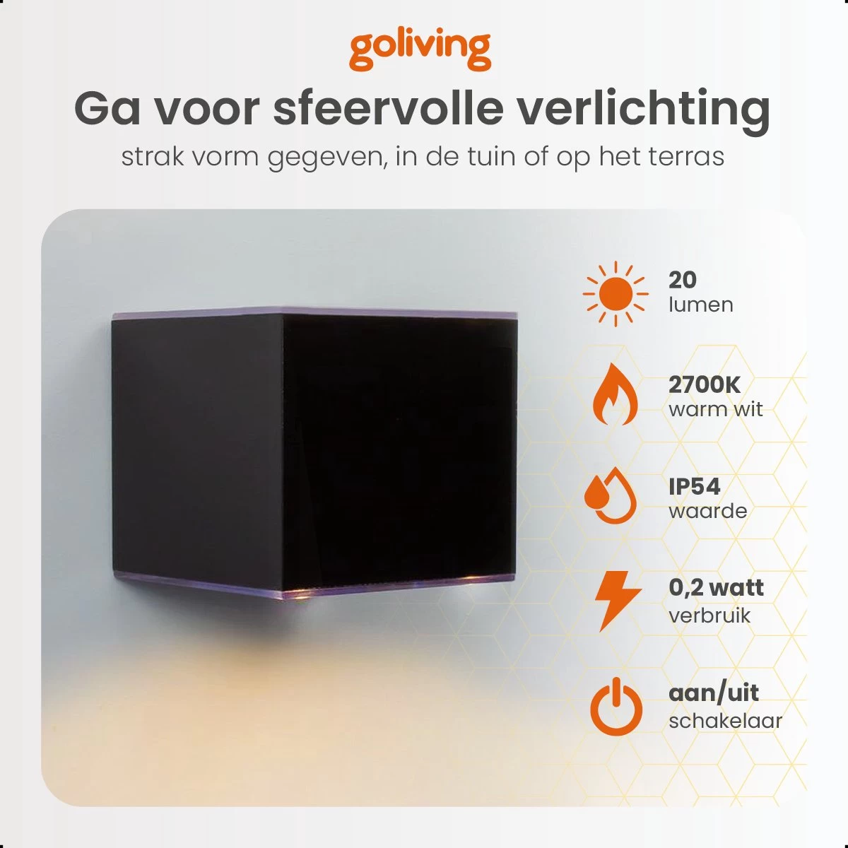 De solar tuinverlichting is voorzien van een modern design dat goed tot zijn recht komt in vrijwel iedere tuin. De lamp heeft een mat zwarte afwerking en is aan de onderkant voorzien van een rooster dat het licht op een speelse manier verspreid. De solar wandlamp is daarnaast aan de bovenkant voorzien van een ingebouwd zonnepaneel die overdag de energie van de zon op kan vangen. Deze energie wordt vervolgens opgeslagen in de ingebouwde lithium batterij en gebruikt wanneer het donker wordt.
