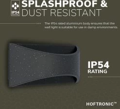 Deze prachtige zwarte design LED wandlamp geeft boven en onder licht af wat een bijzonder mooi effect geeft. De wandlamp is zeer geschikt voor buiten gebruik. De IP54 beschermingsklasse zorgt ervoor dat deze Hoftronic Wandlamp spatwaterdicht is. Een stevige regenbui is dan ook geen probleem voor deze prachtige lamp. De Iowa Wandlamp is vervaardigd uit hoogwaardig onderhoudsarm aluminium en is voorzien van reeds ingebouwde led verlichting.