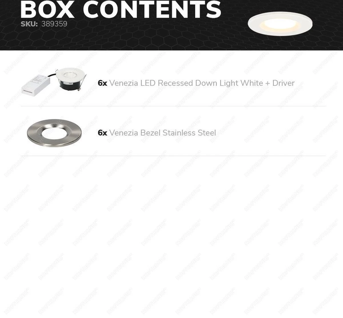 Deze set van 6 RVS inbouwspot is door hun hoge waterdichtheid en aluminium armatuur ideaal voor het sfeervol verlichten van vochtige ruimtes. De Venezia is gemakkelijk zelf te monteren, en schijnt een egaal sfeervol warm wit licht. De Spots verbruiken slechts 6 Watt en produceren maar liefst 600 lumen aan licht.