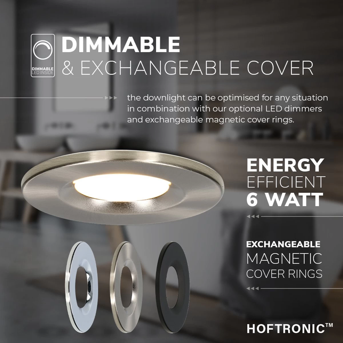 HOFTRONIC – Set van 6 stuks IP65 waterdichte en dimbare RVS LED inbouwspot Venezia 3 Watt 2700K warm wit