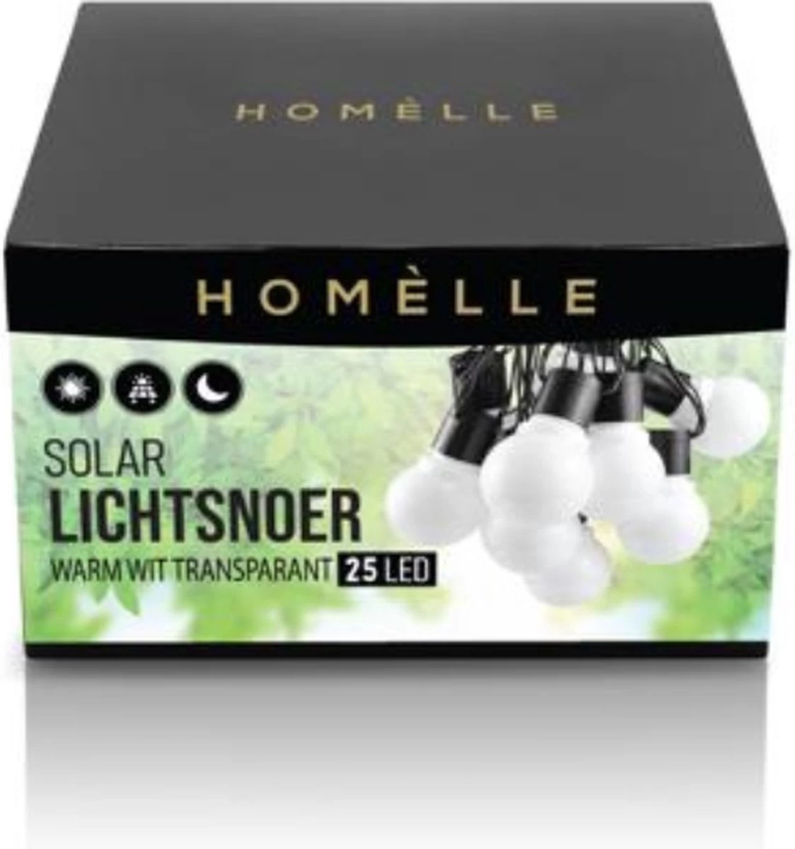 Vanaf het zonnepaneel tot het eerste lichtbolletje zit 2 meter en vanaf dat punt zijn het 20 LED bolletjes op 15 centimeter afstand van elkaar. Door de IP65 beveiliging is het product beschermd tegen hitte, vorst, hagel en regen.