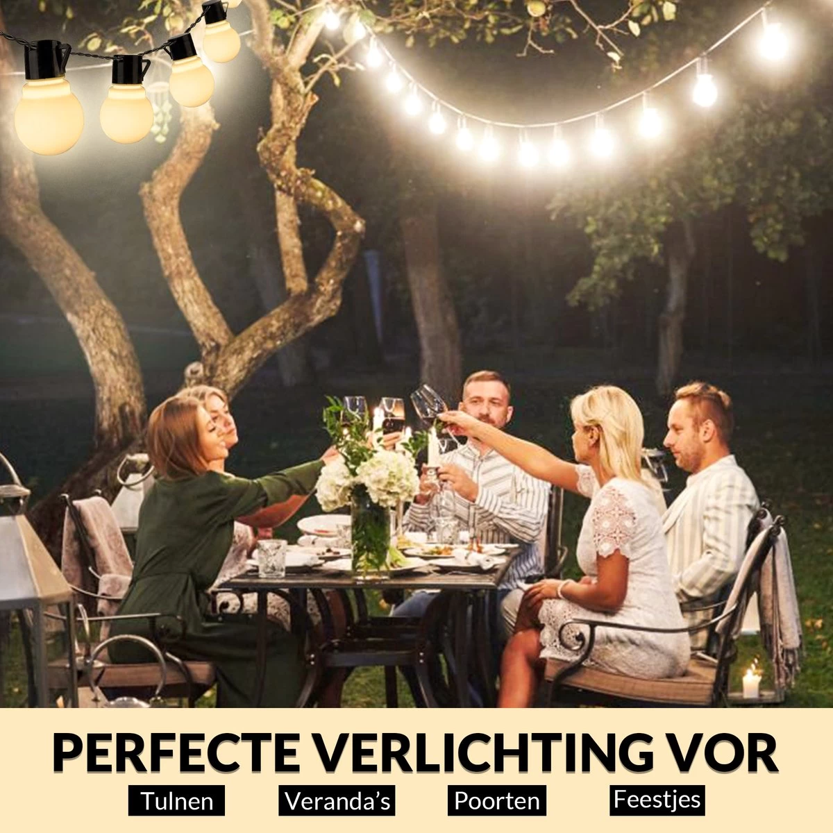 U ervaart de sfeer niet alleen zomers wanneer de zon voortdurend straalt, ook in de winterse dagen wanneer u de gezelligheid nodig heeft zal het lichtsnoer zijn werk doen.