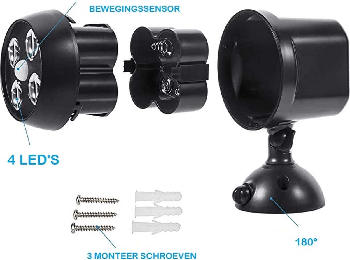 - De lamp is voorzien van 4 ingebouwde LED lampen die elk 150 lumen produceren. Hiermee heb je altijd een goede en een hoogkwalitatieve lichtbron op de plekken waar je het nodig zult hebben. Je kunt de lamp precies monteren dat hij schijnt op de plek die verlicht moet worden.