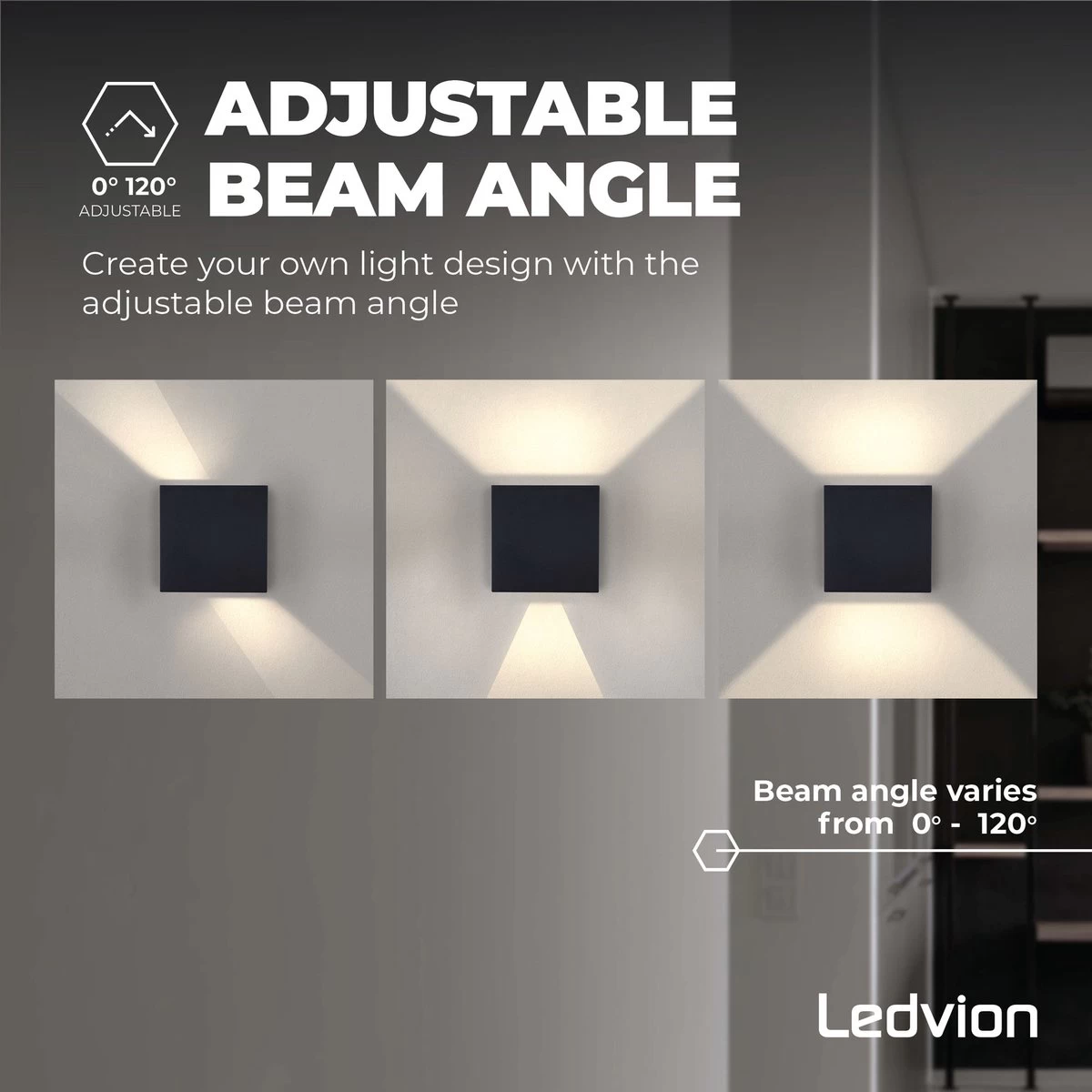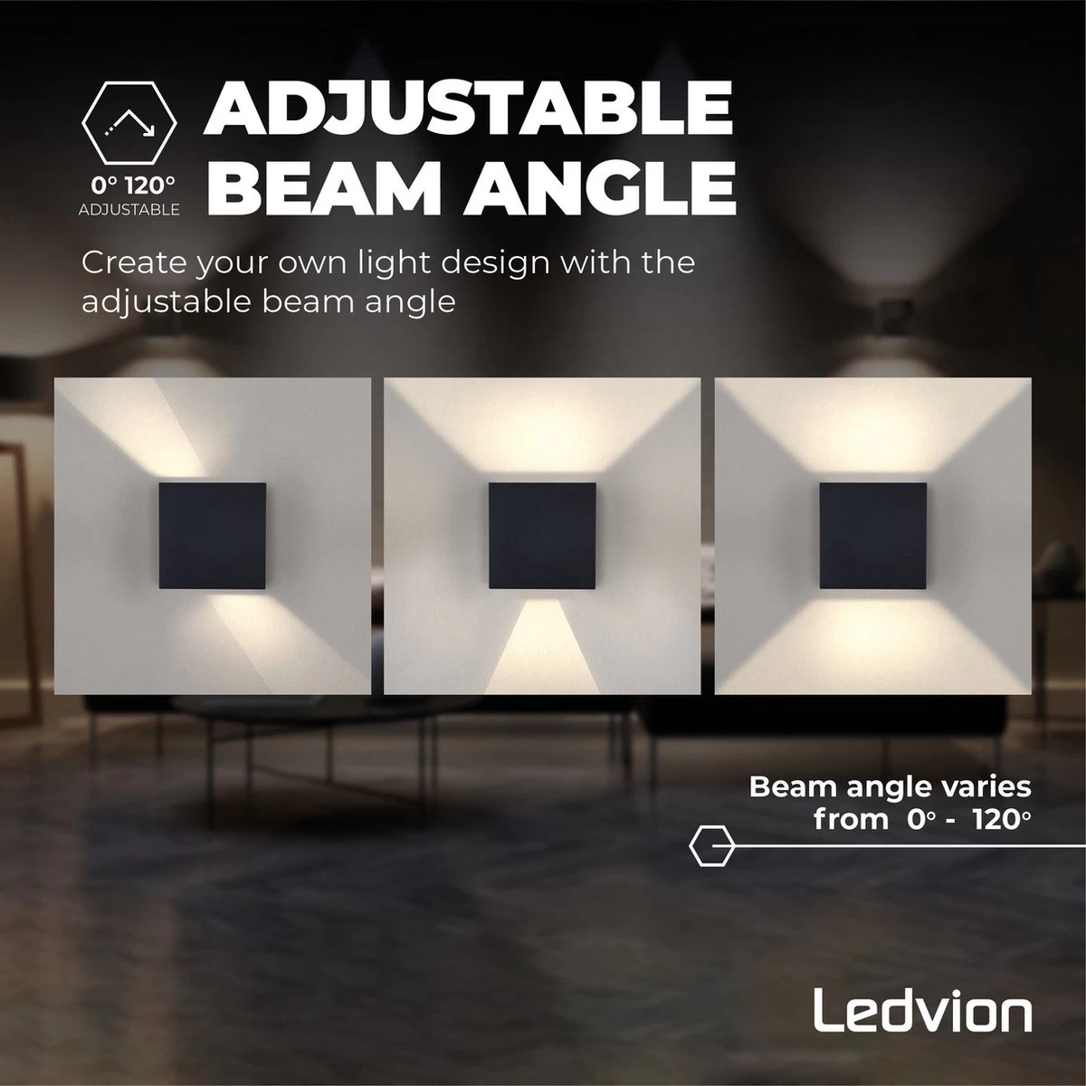 Ook is de gradenhoek van de LED wandlamp aan te passen. Doordat de klepjes in de wandlamp verstelbaar zijn kan je het licht laten schijnen in een hoek van 5 tot en met 120 graden. Hierdoor worden dit soort lampen vaak gebruikt als gevelverlichting.