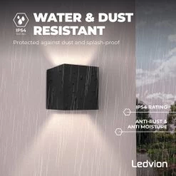 Deze wandlamp heeft een moderne uitstraling en is gemaakt van hoogwaardig zwart aluminium. De muurlamp heeft een IP54-certificering. Hierdoor kan deze zowel binnen als buiten worden gebruikt.