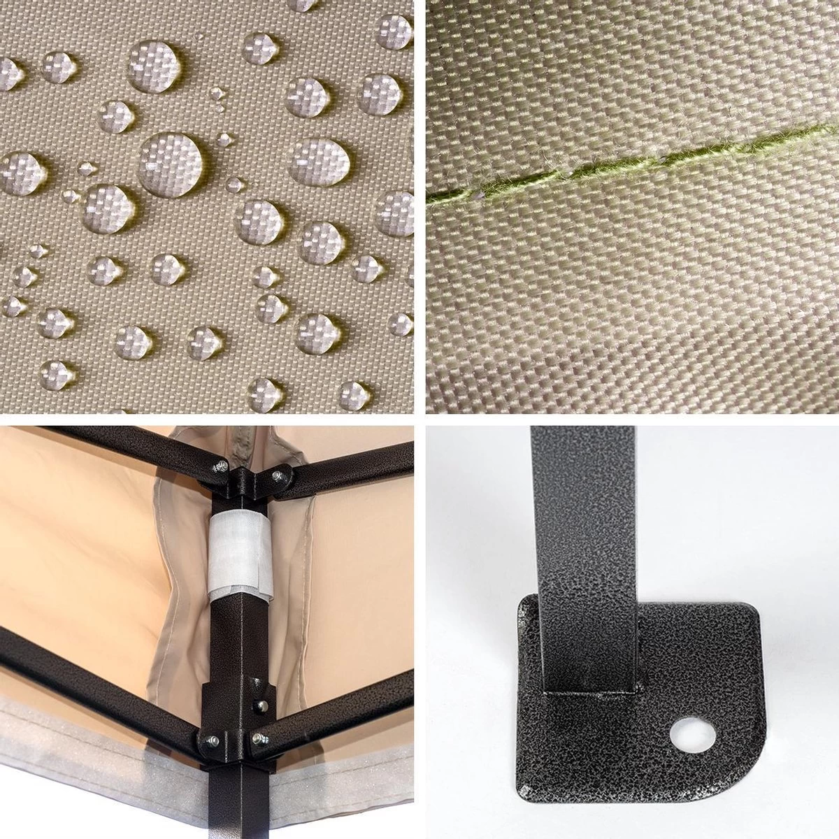 De constructie van de partytent is zeer stabiel en robuust. Alle hoekpunten zijn verstevigd met een extra laagje stof. Het doek van de partytent is gemaakt van dik polyester met nylon. Het robuuste stalen frame in combinatie met de sterke harmonica constructie zorgt ervoor dat deze partytent tegen een stootje kan!