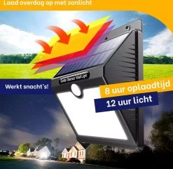 Het fijne van deze buitenlamp met bewegingssensor is dat er standaard led-lamp wordt meegeleverd. Hierdoor hoef je zelf geen extra lamp aan te schaffen en kun je de solar lamp direct monteren. Je hangt hem eenvoudig op aan de muur, en je kunt direct genieten van goed licht!
