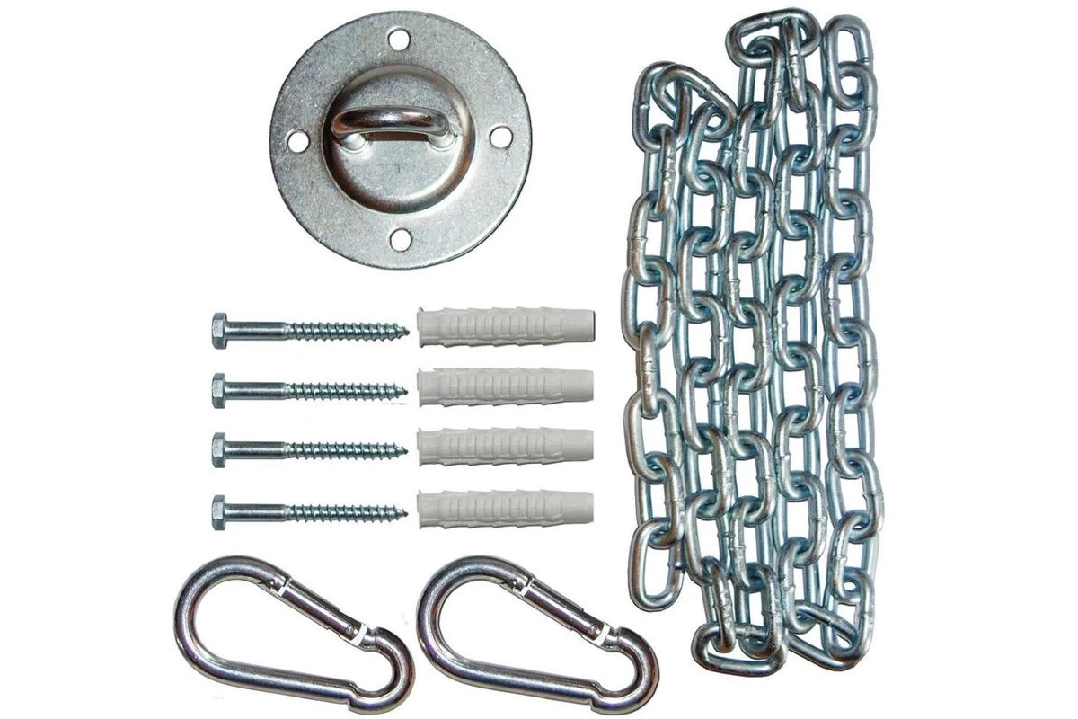 Een hangstoel moet zo opgehangen worden dat deze kan roteren, zodat de koorden waar hij aan hangt niet verslijten, en zodat je heen en weer kan schommelen! Daarvoor is deze plafondhaak bestemd. Schroeven en speciale metalen keilbouten worden meegeleverd. De keilbouten zijn geschikt voor een betonnen plafond (geen hout).