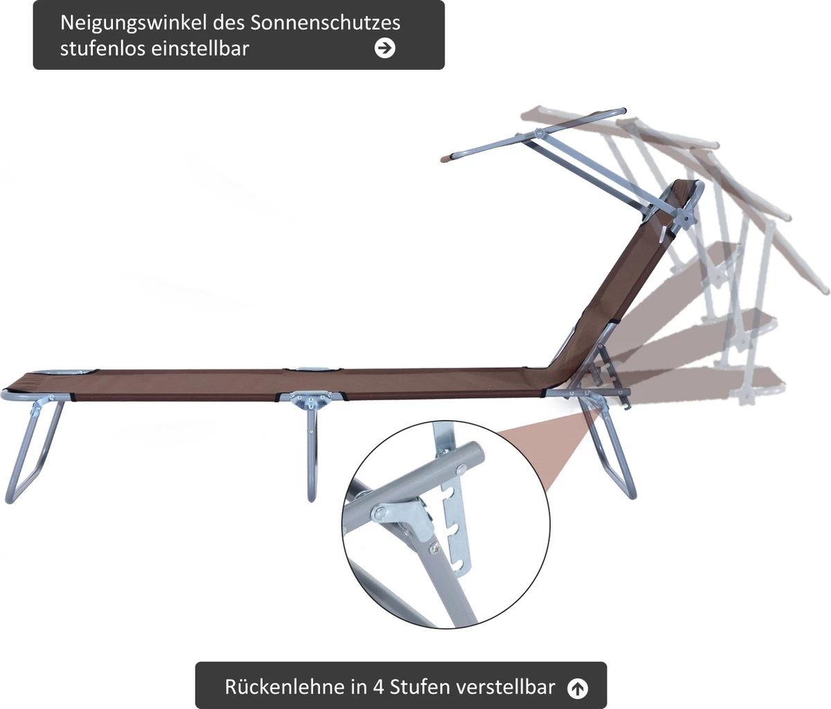 Outsunny Ligstoel Ligbank Voor Buiten Ligstoel Voor Op Het Strand Inklapbaar Met Zonnedak 3 Kleuren 84B-001