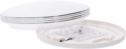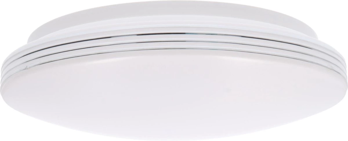Verpakkingsinhoud: 1 x LED plafonnière met bewegingssensor Ø 35 cm met zilveren ringen – 15W – 1300 lm – 3000K + handleiding + bevestigingsmateriaal