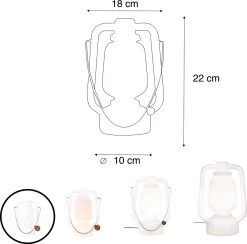 Deze Storm heeft een hoogte van 22 cm en een breedte van 15 cm. De voet heeft een diameter van 10 cm. De lamp wordt geleverd met een LED 5V met flame effect en 3xAAA batterijen. Hierdoor lijkt het net of er een klein vlammetje in de lamp zit. Heel gezellig !