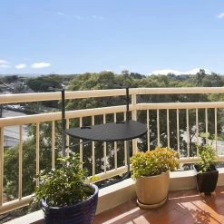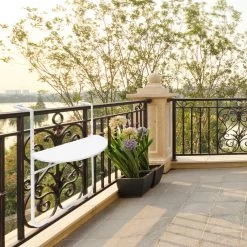 De balkontafel BASTIAN kun je eenvoudig over de reling van het balkon hangen. De hoogte van de tafel kan op drie niveaus ingesteld worden om er voor te zorgen dat de tafel altijd de juiste hoogte heeft onafhankelijk van hoog hoog de reling is.