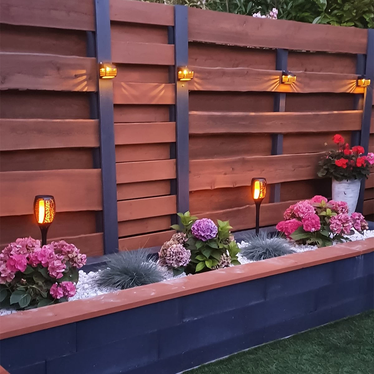 Solar wandlamp Stripe warm wit – zwarte buitenlamp – Set van 4