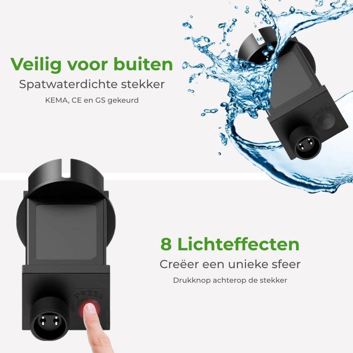 Druk op het knopje achterop de stekker en kies uit één van de 8 verschillende lichteffecten. Maak zowel het huis, als de tuin, super gezellig met deze unieke eigenschap!